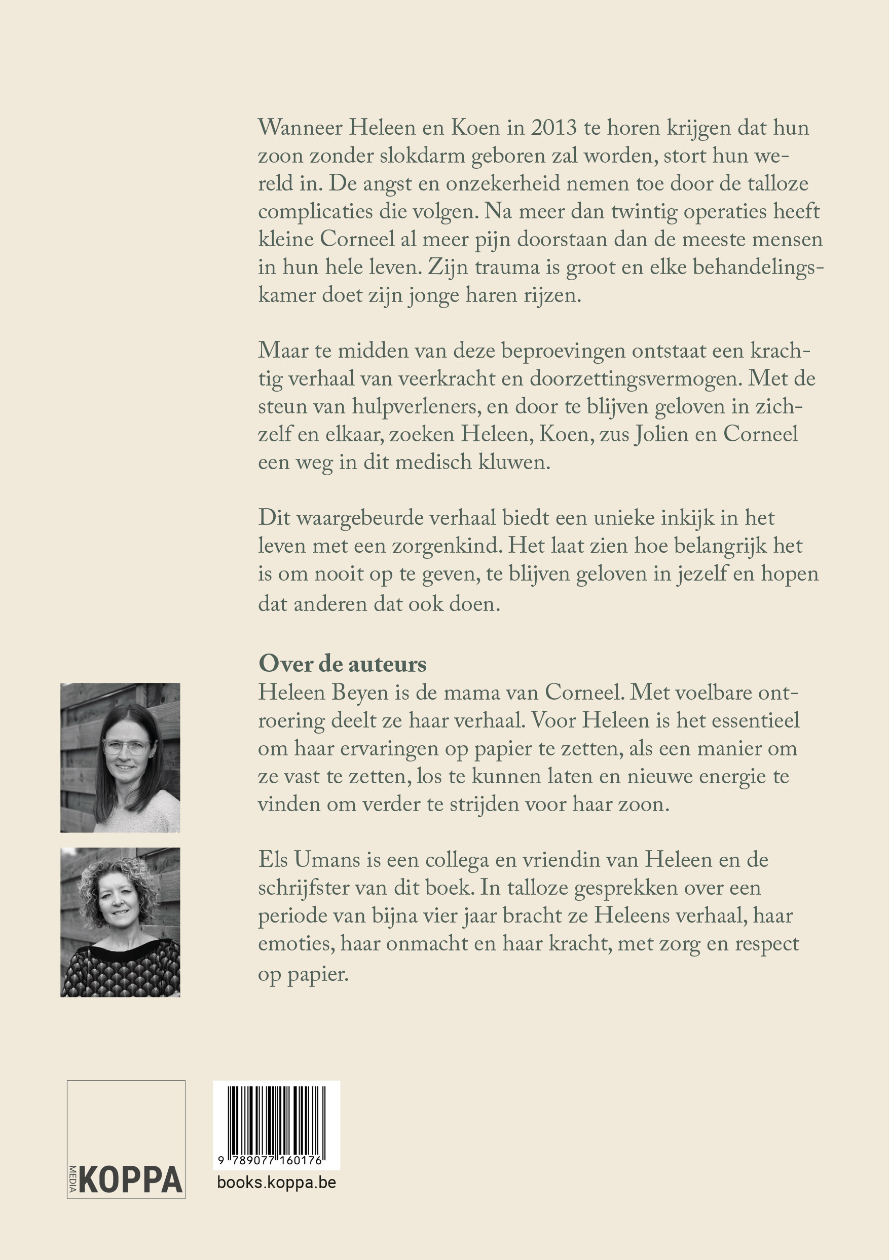 Wanneer Heleen en Koen in 2013 te horen krijgen dat hun zoon zonder slokdarm geboren zal worden, stort hun wereld in. De angst en onzekerheid nemen toe door de talloze complicaties die volgen. Na meer dan twintig operaties heeft kleine Corneel al meer pijn doorstaan dan de meeste mensen in hun hele leven. Zijn trauma is groot en elke behandelingskamer doet zijn jonge haren rijzen.